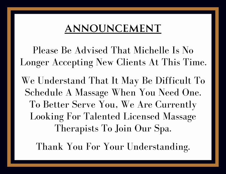 Please provide at least 24 hours notice if you need to reschedule or cancel a treatment. If a client fails to cancel within 24 hours, 50% of the service will be charged. This is out of respect for fellow clients who are looking to schedule appointments and the schedule was full.